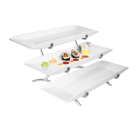 Tier Display Set, 18"L x 23"W x 12"H, 3-tier, (3) rectangular melamine platters (SR152), impact and stain resistant, food and dishwasher safe, steel stand, powder coated finish, black, FDA approved