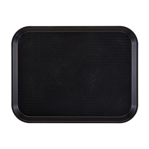 Fast Food Tray, 10-7/16" x 13-9/16", rectangular, rigid bottom, textured surface, dishwasher safe, polypropylene, black, NSF, Made in USA