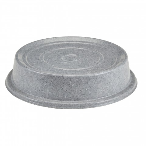 Versa Camcover® Plate Cover, 11-3/8" dia. inside, 2-11/16"H outside, round, without ventilation hole, withstands temperature up to 300°F or 149°C, lightweight, dent & stain resistant, odor-free, dishwasher safe, fiberglass, granite gray, NSF (144 each minimum order)