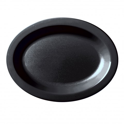 Camwear® Platter, 12" x 9", oval, narrow rim, non-porous surface, smooth glossy finish, scratch resistant, textured surface, polycarbonate, black, NSF