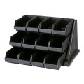 Versa Organizer Rack, with (12) bins, 25-1/8"L x 21-3/8"D x 14-1/4"H, can be wall-mounted (each bin can hold up to 10 lbs.) or placed on flat surface, polyethylene, black, Made in USA