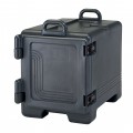 Combo Carrier, for half size sheet pans, trays, & a variety of food pan sizes, 17"W x 25-3/4"D x 22-3/8"H, stackable, polyethylene with foam insulation, holds food at safe temperature for 4+ hours, removable door without gaskets, door opens 270°, labeling area on door, latches, black, NSF, Made in USA