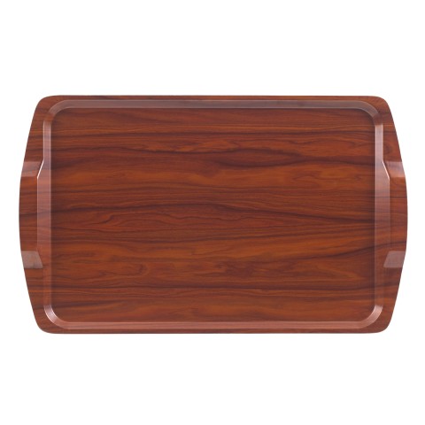 Room Service Tray, rectangular, 14" x 21" inner dimensions, low profile, dishwasher safe, fiberglass, walnut, NSF