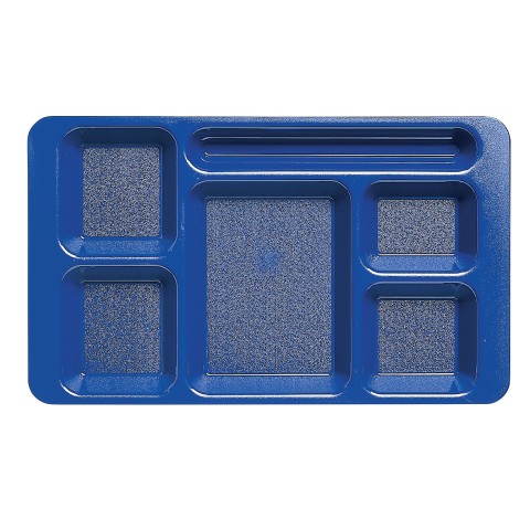 Camwear® 2 x 2 Compartment Tray, 6-compartment, rectangular, 9" x 15", Camwear® polycarbonate, gradual slope, dishwasher safe, navy blue, Ecosafe, NSF, Made in USA