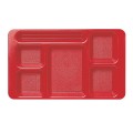 Camwear® 2 x 2 Compartment Tray, 6-compartment, rectangular, 9" x 15", Camwear® polycarbonate, gradual slope, dishwasher safe, red, Ecosafe, NSF, Made in USA