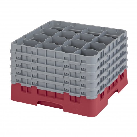 Camrack® Glass Rack, with (5) soft gray extenders, full size, 19-3/4" x 19-3/4" x 12-1/8", (16) compartments, 4-3/8" max. dia., 11" max. height, cranberry, HACCP compliant, NSF, Made in USA