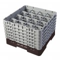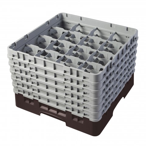 Camrack® Glass Rack, with (6) soft gray extenders, full size, 19-3/4" x 19-3/4" x 13-3/4", (16) compartments, 4-3/8" max. dia., 11-3/4" max. height, brown, HACCP compliant, NSF, Made in USA