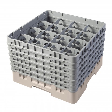 Camrack® Glass Rack, with (6) soft gray extenders, full size, 19-3/4" x 19-3/4" x 13-3/4", (16) compartments, 4-3/8" max. dia., 11-3/4" max. height, beige, HACCP compliant, NSF, Made in USA