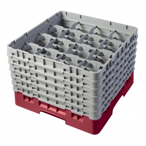 Camrack® Glass Rack, with (6) soft gray extenders, full size, 19-3/4" x 19-3/4" x 13-3/4", (16) compartments, 4-3/8" max. dia., 11-3/4" max. height, cranberry, HACCP compliant, NSF, Made in USA