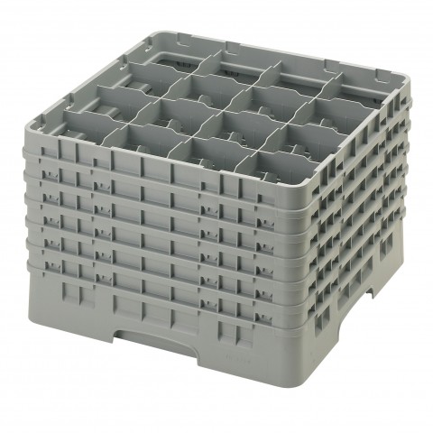 Camrack® Glass Rack, with (6) soft gray extenders, full size, 19-3/4" x 19-3/4" x 13-3/4", (16) compartments, 4-3/8" max. dia., 12-5/8" max. height, soft gray, HACCP compliant, NSF, Made in USA