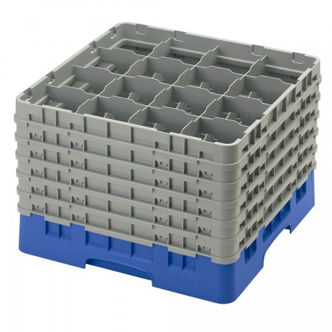 Camrack® Glass Rack, with (6) soft gray extenders, full size, 19-3/4" x 19-3/4" x 13-3/4", (16) compartments, 4-3/8" max. dia., 12-5/8" max. height, blue, HACCP compliant, NSF, Made in USA