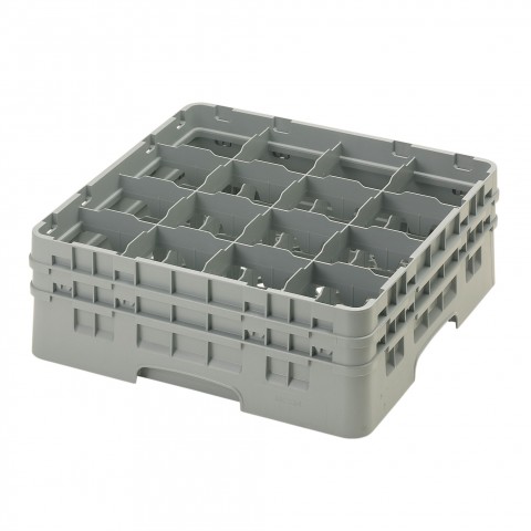 Camrack® Glass Rack, with (2) soft gray extenders, full size, 19-3/4" x 19-3/4" x 7-1/4", (16) compartments, 4-3/8" max. dia., 6-1/8" max. height, soft gray, HACCP compliant, NSF