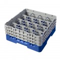 Camrack® Glass Rack, with (3) soft gray extenders, full size, 19-3/4" x 19-3/4" x 8-7/8", (16) compartments, 4-3/8" max. dia., 6-7/8" max. height, blue, HACCP compliant, NSF, Made in USA
