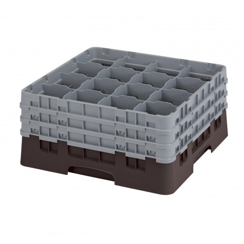 Camrack® Glass Rack, with (3) soft gray extenders, full size, 19-3/4" x 19-3/4" x 8-7/8", (16) compartments, 4-3/8" max. dia., 7-3/4" max. height, brown, HACCP compliant, NSF, Made in USA