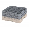 Camrack® Glass Rack, with (3) soft gray extenders, full size, 19-3/4" x 19-3/4" x 8-7/8", (16) compartments, 4-3/8" max. dia., 7-3/4" max. height, beige, HACCP compliant, NSF, Made in USA