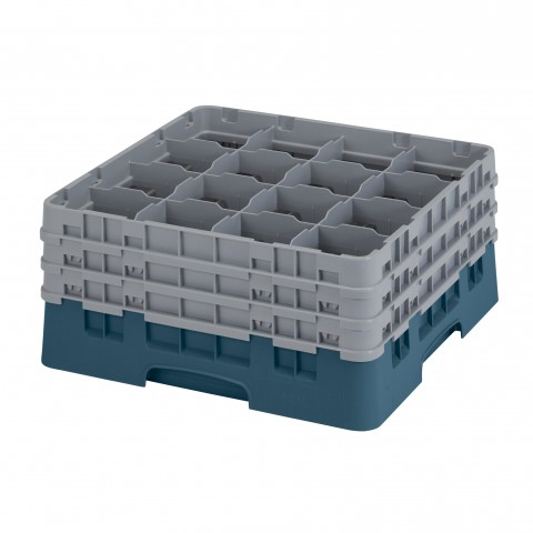 Camrack® Glass Rack, with (3) soft gray extenders, full size, 19-3/4" x 19-3/4" x 8-7/8", (16) compartments, 4-3/8" max. dia., 7-3/4" max. height, teal, HACCP compliant, NSF, Made in USA