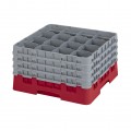 Camrack® Glass Rack, with (4) soft gray extenders, full size, 19-3/4" x 19-3/4" x 10-1/2", (16) compartments, 4-3/8" max. dia., 9-3/8" max. height, red, HACCP compliant, NSF