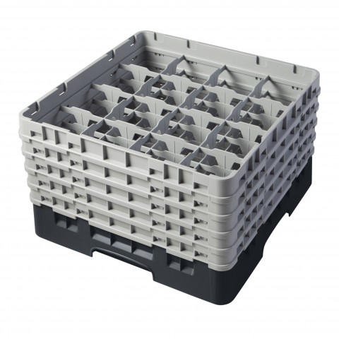Camrack® Glass Rack, with (5) soft gray extenders, full size, 19-3/4" x 19-3/4" x 12-1/8", (16) compartments, 4-3/8" max. dia., 10-1/8" max. height, black, HACCP compliant, NSF, Made in USA