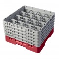 Camrack® Glass Rack, with (5) soft gray extenders, full size, 19-3/4" x 19-3/4" x 12-1/8", (16) compartments, 4-3/8" max. dia., 10-1/8" max. height, red, HACCP compliant, NSF, Made in USA