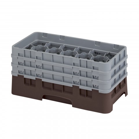Camrack® Glass Rack, with (3) soft gray extenders, half size, 10" x 19-3/4" x 8-7/8", (17) compartments, 2-7/8" max. dia., 6-7/8" max. height, brown, HACCP compliant, NSF, Made in USA
