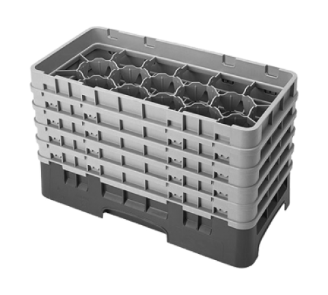 Camrack® Glass Rack, with (5) soft gray extenders, half size, 10" x 19-3/4" x 12-1/8", (17) compartments, 2-7/8" max. dia., 10-1/8" max. height, navy blue, HACCP compliant, NSF