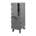 Camcart®, with security package, double cavity for food storage boxes, 33-1/4"L x 21-1/2"D x 64-5/16"H, (26) support rails on 1-3/4" centers, polyethylene, foam insulation, molded-in handle, (4) 6" casters (2 fixed, 2 swivel, 1 with brake), coffee beige, NSF, Made in USA