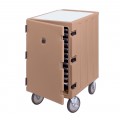 Camcart®, for trays & sheet pans, with removable cutting board on top, holds up to (13) 18" x 26" trays or sheet/bun pans, (13) tray supports with 1-3/4" centers, 32"L x 21-1/2"D x 37-1/2"H, (4) 6" casters (2 fixed, 2 swivel, 1 with brake), coffee beige, NSF, Made in USA