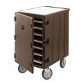 Camcart®, for trays & sheet pans, 3" clearance between trays, with removable cutting board on top, holds up to (7) 18"x 26" trays or sheet/bun pans, (7) tray supports on 3-3/4" centers, 32"L x 21-1/2"D x 37-1/2"H, (4) 6" casters (2 fixed, 2 swivel, 1 with brake), dark brown, NSF, Made in USA