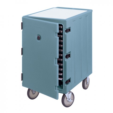 Camcart®, for trays & sheet pans, with removable cutting board on top, holds up to (13) 18" x 26" trays or sheet/bun pans, (13) tray supports with 1-3/4" centers, 32"L x 21-1/2"D x 37-1/2"H, (4) 6" casters (2 fixed, 2 swivel, 1 with brake), slate blue, NSF, Made in USA