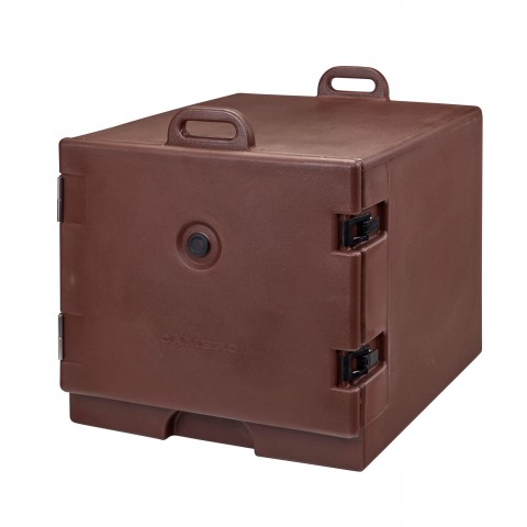 Camcarrier®, for trays & sheet pans, holds up to (6) 18" x 26" sheet pans, 21-1/2"W x 29-1/4"D x 22-1/2"H, polyethylene with foam insulation, molded-in handles on top for easy maneuvering, dark brown, NSF