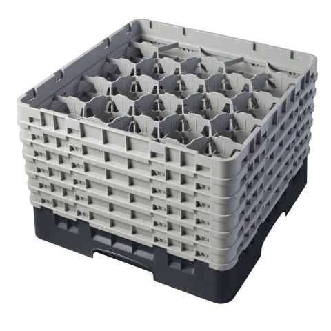 Camrack® Glass Rack, with (6) soft gray extenders, full size, 19-3/4" x 19-3/4" x 13-3/4", (20) compartments, 3-7/8" max. dia., 11-3/4" max. height, black, HACCP compliant, NSF, Made in USA