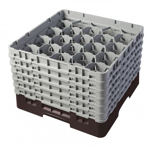 Camrack® Glass Rack, with (6) soft gray extenders, full size, 19-3/4" x 19-3/4" x 13-3/4", (20) compartments, 3-7/8" max. dia., 11-3/4" max. height, brown, HACCP compliant, NSF, Made in USA