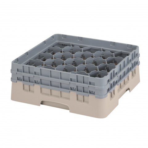 Camrack® Glass Rack, with (2) soft gray extenders, full size, 19-3/4" x 19-3/4" x 7-1/4", (20) compartments, 3-7/8" max. dia., 5-1/4" max. height, beige, HACCP compliant, NSF, Made in USA