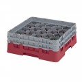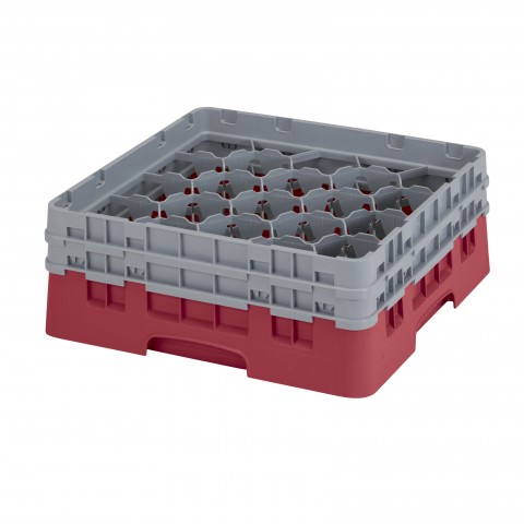 Camrack® Glass Rack, with (2) soft gray extenders, full size, 19-3/4" x 19-3/4" x 7-1/4", (20) compartments, 3-7/8" max. dia., 5-1/4" max. height, cranberry, HACCP compliant, NSF, Made in USA