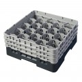 Camrack® Glass Rack, with (3) soft gray extenders, full size, 19-3/4" x 19-3/4" x 8-7/8", (20) compartments, 3-7/8" max. dia., 6-7/8" max. height, black, HACCP compliant, NSF, Made in USA