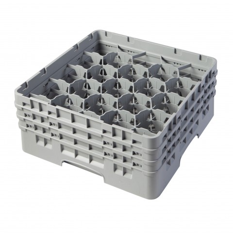 Camrack® Glass Rack, with (3) soft gray extenders, full size, 19-3/4" x 19-3/4" x 8-7/8", (20) compartments, 3-7/8" max. dia., 6-7/8" max. height, soft gray, HACCP compliant, NSF, Made in USA
