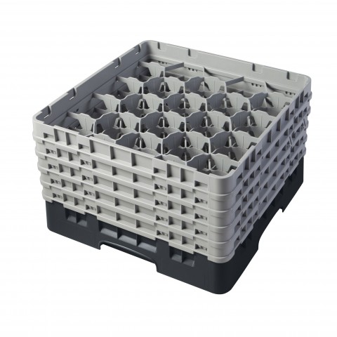 Camrack® Glass Rack, with (5) soft gray extenders, full size, 19-3/4" x 19-3/4" x 12-1/8", (20) compartments, 3-7/8" max. dia., 10-1/8" max. height, black, HACCP compliant, NSF