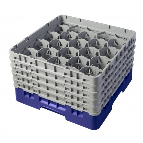 Camrack® Glass Rack, with (5) soft gray extenders, full size, 19-3/4" x 19-3/4" x 12-1/8", (20) compartments, 3-7/8" max. dia., 10-1/8" max. height, navy blue, HACCP compliant, NSF, Made in USA