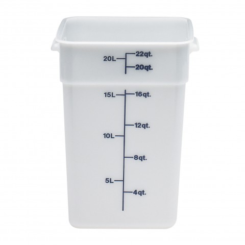 CamSquare® Food Container, 22 qt., 11-1/4"L x 12-1/4"W x 15-3/4"H, with handles, blue graduation, polyethylene, dishwasher safe, resists stains & odors, natural white, NSF