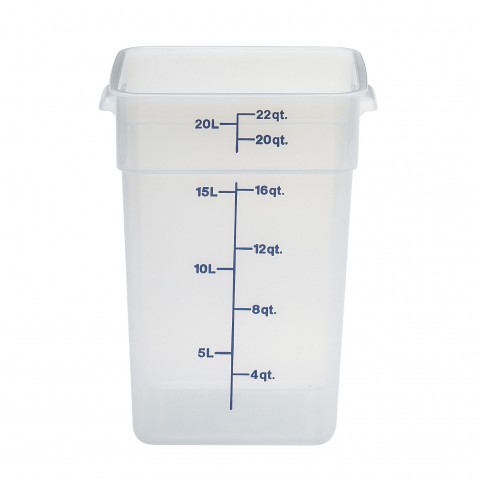 CamSquare® Food Container, 22 qt., 11-1/4"L x 12-1/4"W x 15-3/4"H, with handles, blue graduation, polypropylene, dishwasher safe, resists stains & odors, translucent, NSF