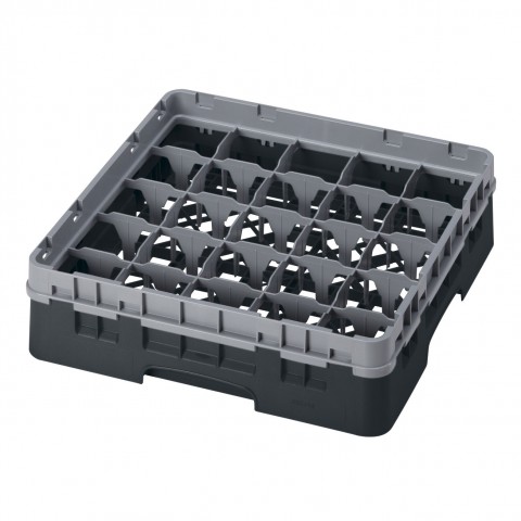 Camrack® Glass Rack, with soft gray extender, full size, 19-3/4" x 19-3/4" x 5-5/8", (25) compartments, 3-7/16" max. dia., 3-5/8" max. height, black, HACCP compliant, NSF, Made in USA