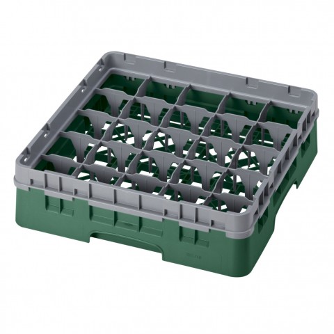 Camrack® Glass Rack, with soft gray extender, full size, 19-3/4" x 19-3/4" x 5-5/8", (25) compartments, 3-7/16" max. dia., 3-5/8" max. height, Sherwood green, HACCP compliant, NSF, Made in USA