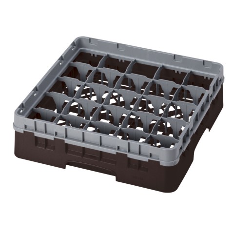 Camrack® Glass Rack, with soft gray extender, full size, 19-3/4" x 19-3/4" x 5-5/8", (25) compartments, 3-7/16" max. dia., 3-5/8" max. height, brown, HACCP compliant, NSF, Made in USA