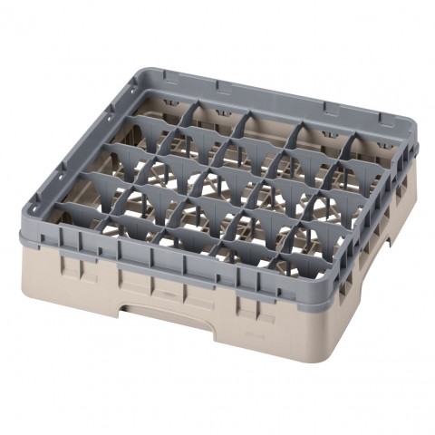 Camrack® Glass Rack, with soft gray extender, full size, 19-3/4" x 19-3/4" x 5-5/8", (25) compartments, 3-7/16" max. dia., 3-5/8" max. height, beige, HACCP compliant, NSF, Made in USA
