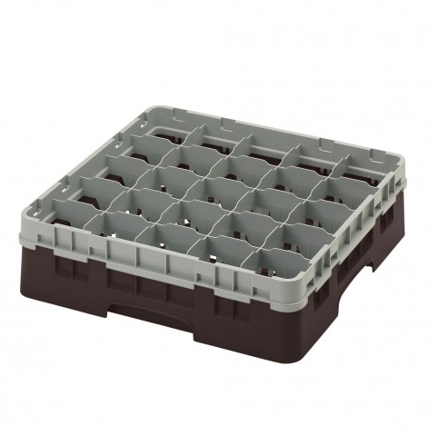 Camrack® Glass Rack, with soft gray extender, full size, low profile, 19-3/4" x 19-3/4" x 5-5/8", (25) compartments, 3-7/16" max. dia., 4-1/2" max. height, brown, HACCP compliant, NSF, Made in USA
