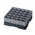 Camrack® Glass Rack, with (2) soft gray extenders, full size, low profile, 19-3/4"x 19-3/4" x 7-1/4", (25) compartments, 3-7/16" max. dia., 6-1/8" max. height, black, HACCP compliant, NSF