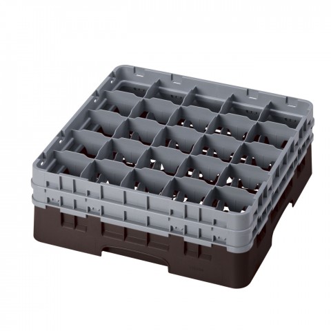 Camrack® Glass Rack, with (2) soft gray extenders, full size, low profile, 19-3/4"x 19-3/4" x 7-1/4", (25) compartments, 3-7/16" max. dia., 6-1/8" max. height, brown, HACCP compliant, NSF, Made in USA