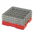 Camrack® Glass Rack, with (3) soft gray extenders, full size, 19-3/4" x 19-3/4" x 8-7/8", (25) compartments, 3-7/16" max. dia., 6-7/8" max. height, red, HACCP compliant, NSF, Made in USA