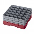 Camrack® Glass Rack, with (3) soft gray extenders, full size, low profile, 19-3/4" x 19-3/4" x 8-7/8", (25) compartments, 3-7/16" max. dia., 7-3/4" max. height, cranberry, HACCP compliant, NSF