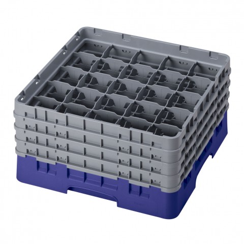 Camrack® Glass Rack, with (4) soft gray extenders, full size, 19-3/4" x 19-3/4" x 10-1/2", (25) compartments, 3-7/16" max. dia., 8-1/2" max. height, navy blue, HACCP compliant, NSF, Made in USA